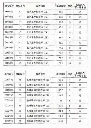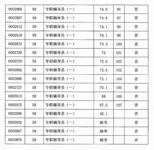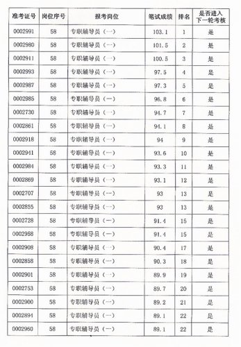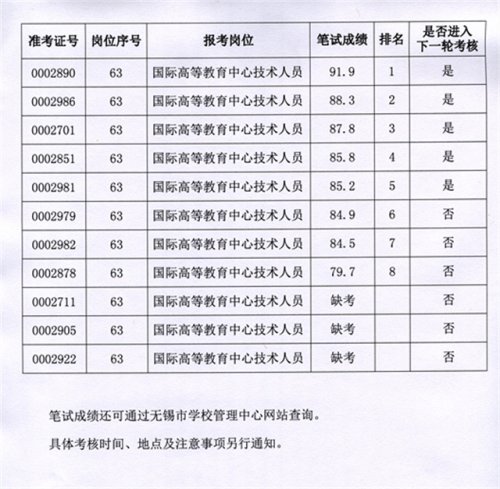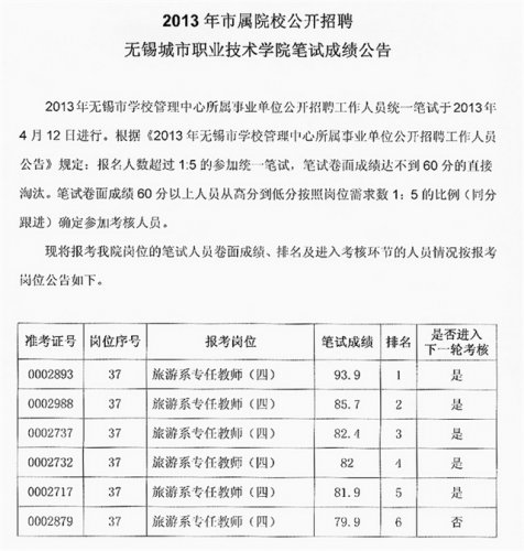 2013年公开招聘笔试成绩公告