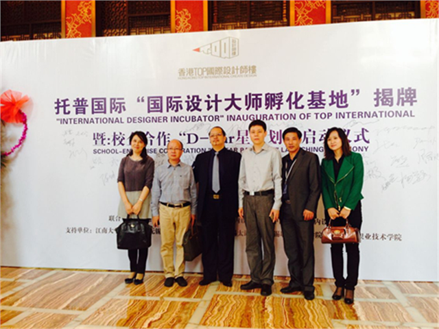 公司领导赴学院参观交流学院参观走访企业签约现场签约双方合影留念经过前期的洽谈沟通,10月20日上午,瞿立新副院长带领建筑工程系、艺术设计系相关负责人赴香港TOP国际设计师楼有限公司参加该公司“国际设计大师孵化基地”揭牌仪式暨校企合作“D-star星计划”启动仪式。江南大学等其它4所锡城院校也共同参加了该活动。