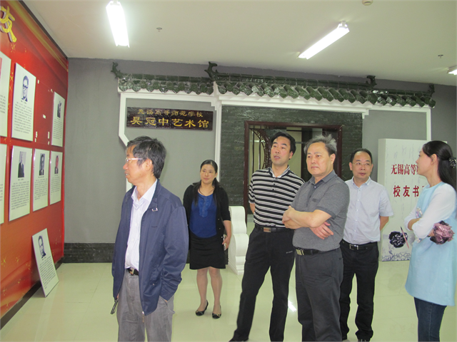 院党委书记高建宁与无锡市学校管理中心主任许立新交谈院长郁宝荣向来宾一行介绍我院书画教育情况来宾一行参观校园参观吴冠中艺术馆10月11日上午,无锡市委宣传部调研员刘川、无锡市书法家协会主席孙璘一行在无锡市学校管理中心主任许立新陪同下来我院调研书画教育情况。院党委书记高建宁、院长郁宝荣介绍了我院建设发展和书画教育情况,刘部长一行还实地考察了我院南校区校史陈列馆和吴冠中艺术馆。