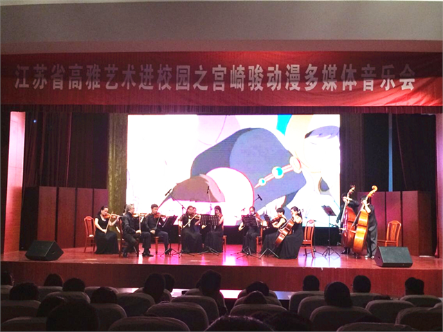 音乐会现场10月12日晚18:30,由江苏省教育厅、无锡城市职业技术学院主办,我院大学生艺术教育中心承办的 “高雅艺术进校园”——宫崎骏动漫多媒体音乐会在我院大报告厅举行。南京阳光室内乐团为我院同学带来了一场精彩纷呈的视听盛宴。