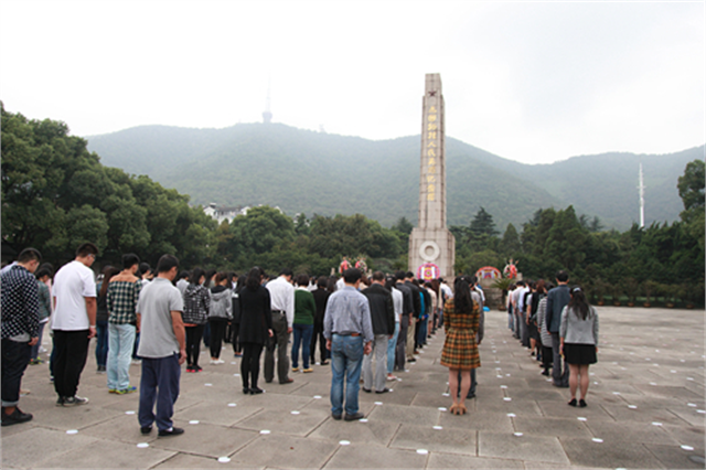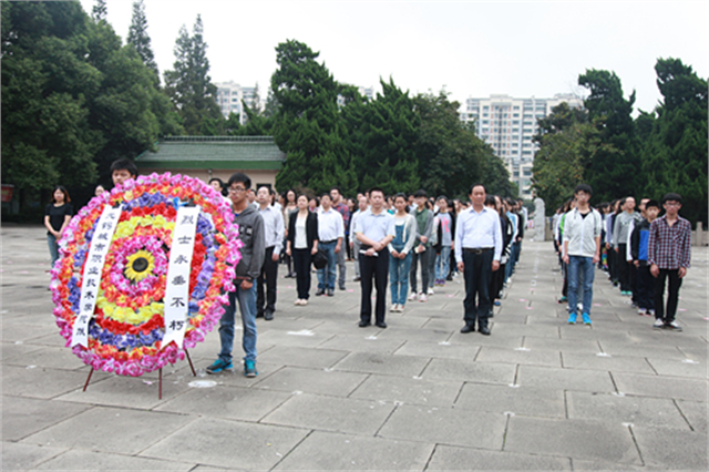 向烈士纪念碑敬献花圈向革命烈士默哀院党委书记高建宁讲话9月30日,是我国首个烈士纪念日,上午,我院南北校区教职工及学生代表150余人前往无锡市烈士陵园,在绵绵的秋雨中祭扫革命先烈,向革命烈士纪念碑敬献花圈。缅怀革命先烈的丰功伟绩,颂扬革命先烈的崇高精神。