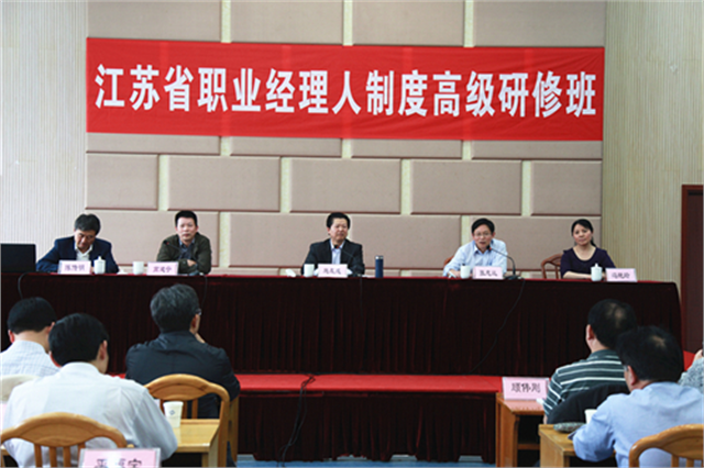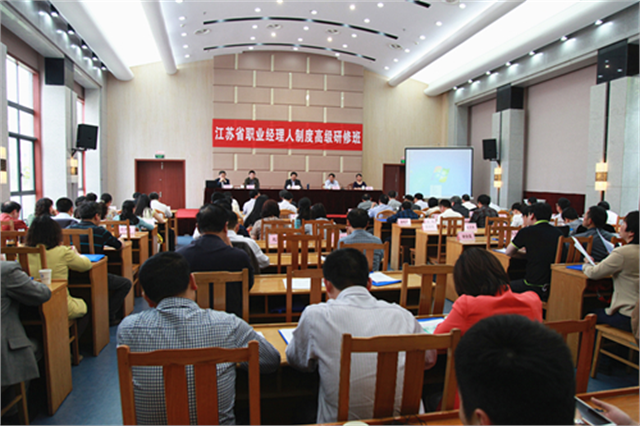 开班典礼现场领导出席开班典礼院党委书记高建宁教授致欢迎辞江苏省人社厅专技处张志远处长讲话吴瑞林会长授课陈传明教授授课施有成会长授课吴瑞林会长参观我院学生实训基地——智慧酒店为贯彻落实党的十八届三中全会关于“建立职业经理人制度”、江苏省委十二届六次会议关于“建立职业经理人制度,培育职业经理人市场”的战略部署,加速我省十二五人才发展规划要求的万名职业经理人队伍建设,促进江苏经济转型升级,推动江苏企业发展,5月8日下午,由江苏省经信委、江苏省人社厅和江苏省职业经理人协会联合举办的江苏省职业经理人制度高级研修班在我院隆重开班。江苏省经信委原副巡视员、江苏省职业经理人协会常务副会长施友成,江苏省人社厅专技处副处长张志远,江苏省经信委教育培训处副处长冯艳玲,南京大学商学院党委书记陈传明,我院党委书记高建宁、副院长瞿立新等领导出席开班仪式。来自全国多家高校的领导、专家学者、行业企业的高级管理人员以及我院旅游系教师共150余人参加了此次培训。开班典礼由施有成会长主持。