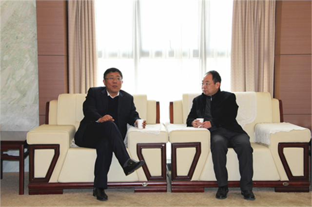 院长郁宝荣与市政府教育督导室主任施正洲督学交谈