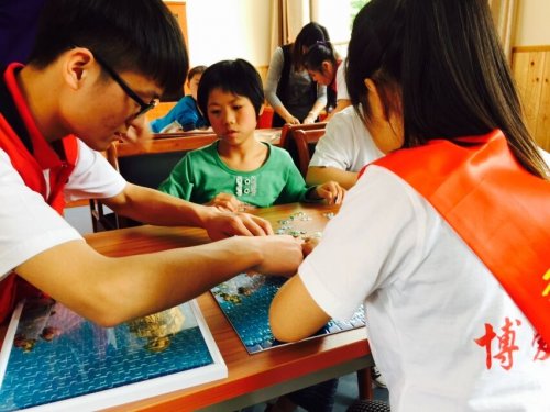 5月17日,第25个“全国助残日”,5月16日,我院20名志愿者到滨湖区教育康复中心,参加“让爱的阳光照亮星星的孩子”主题活动暨庆祝第25个“全国助残日”志愿服务活动。 活动当天,教康中心组织了一场“让爱的阳光照亮星星的孩子”庆祝第25次全国助残日系列活动暨残疾人集体舞展演,来自滨湖区各残疾人代表组成的舞蹈团的表演带给观众心灵的震撼与感动。志愿者到达教康中心以后,自动分成7个小组,分别到烘焙坊、体感教室、泥人室、拼图室、数字油画室、互动多媒体、多感官室等地方陪伴特殊儿童进行烘焙、捏泥人、拼图等活动。面对特殊儿童,志愿者或耐心陪伴、或用心倾听、或手把手教,让每个儿童在活动中快乐的学习到知识。 据悉,无锡市滨湖区教育康复中心于2013年10月份成立,中心有80多位智障儿童,我院与教康中心在2014年合作了“彩虹桥”志愿服务项目,通过电脑制图教导、心理疏导、传统文化普及、环保宣传等方式,在服务残障青少年的同时也增强了我院学生的奉献意识,在服务中发现自我、提升自我。 志愿者和特殊儿童一起玩拼图游戏 志愿者在教儿童进行烘焙操作 志愿者合影 撰稿:李红梅 来源:团委 |